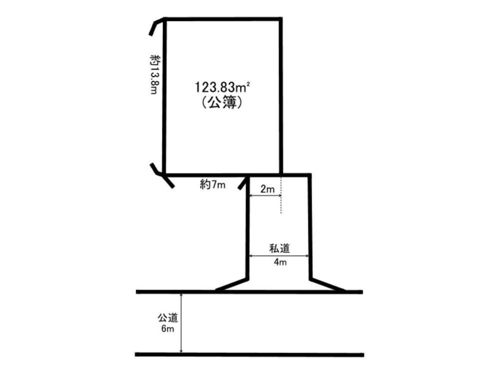 - 南東側 私道4m 間口約2m